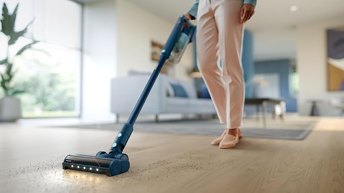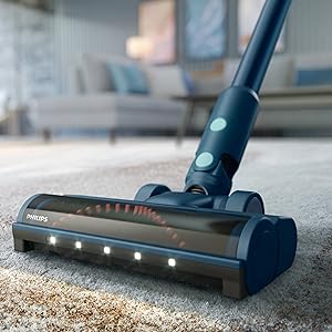 جارو شارژی فیلیپس مدل XC5041 دارای یک پارویی تمام برقی است که برس این پارویی بصورت الکتریکی با روشن شدن موتور به چرخش درمی آید. همچنین در قسمت پیشانی پارویی یک نوار LED پرنور تعبیه شده است تا در مکان هایی که نور کمی دارد مانند زیر کمد و مبلمان شما دید مناسب باری جهت حرکت جارو داشته باشید.