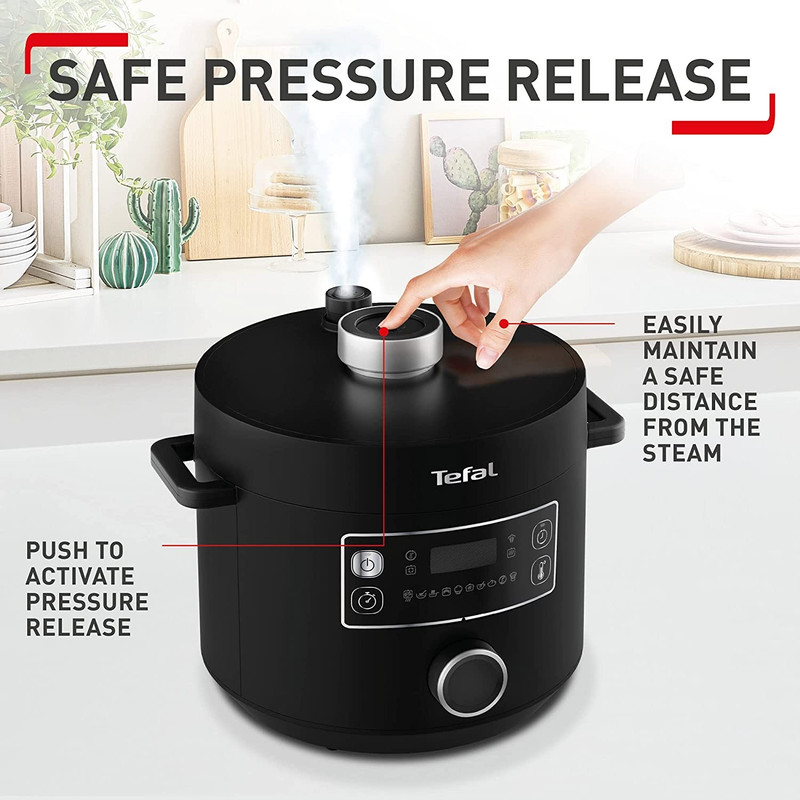 مولتی کوکر تفال مدل CY754830 با طراحی مدرن و خلاقانه دایره ای شکل به رنگ مشکی در آشپزخانه تان به زیبایی می درخشد. ظرفیت این مولتی کوکر 4.8 لیتر بوده که انتخابی ایدهآل برای تهیه وعده های غذایی مختص جمع های خانوادگی و مهمانی ها خواهد بود. همچنین اندازه این دستگاه جمع و جور بوده که نگرانی شما را از بابت اشغال نکردن فضای زیاد در آشپزخانه ها برطرف کرده است.